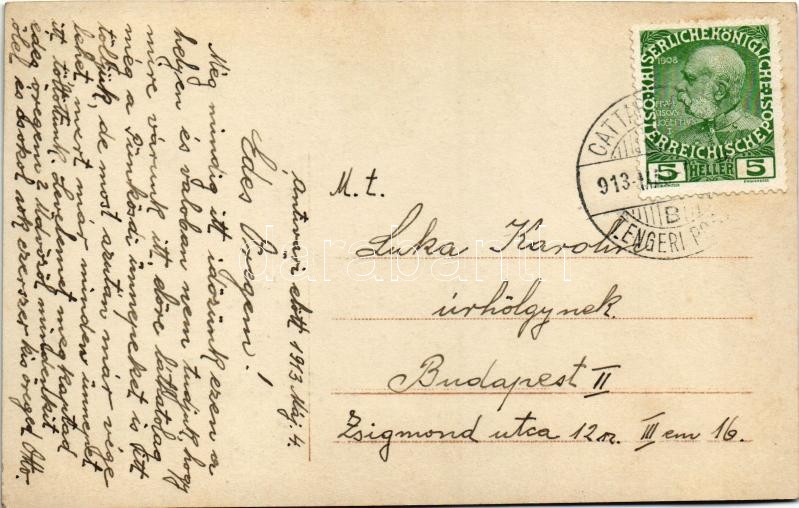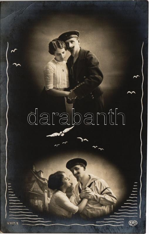 1913 Osztrák-magyar haditengerészet matróza a szerelmével / K.u.K. Kriegsmarine Matrosenliebe / Austro-Hungarian Navy mariner with his lover. EAS 9307/5. + ‘CATTARINO-FIUME TENGERI POSTA’ (EK)<a href="https://www.darabanth.com/hu/gyorsarveres/418/ka