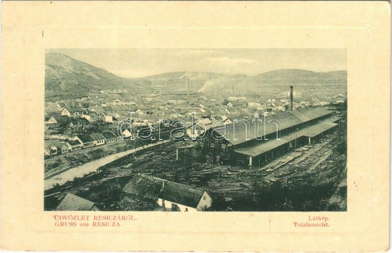 1913 Resicabánya, Resicza, Recita, Resita; látkép, vasgyár, iparvasút. W. L. Bp. 137. / general view, iron factory, ironworks, industrial railway (fa)<a href="https://www.darabanth.com/hu/nagyaukcio/38/kategoriak~Kepeslapok/Erdely~15646/1913-Resicab