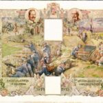 1914-1915 A király és a haza védelmére, végigküzdött hősi harcok emlékére. Szecessziós katonai propaganda művészlap Ferenc József és II. Vilmos arcképével. Hátoldalon Hadsegélyező Hivatal szövege / WWI Viribus Unitis military