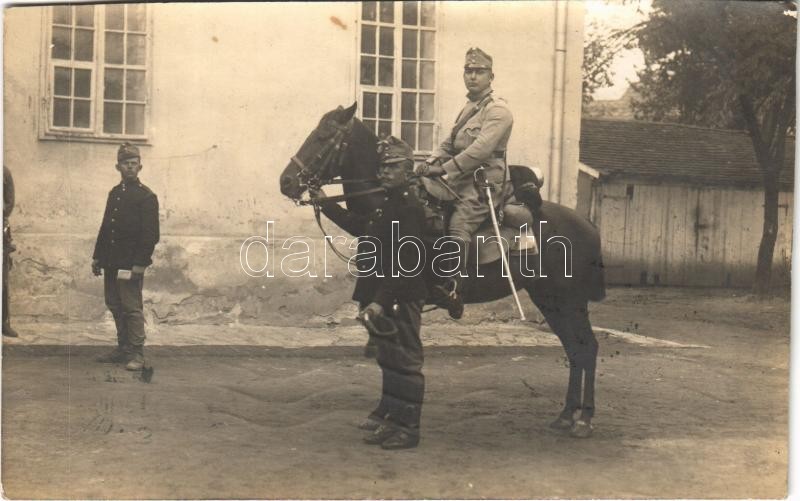 1914 Budapest VIII. Ludovika, lovas katona teljes felszerelésben az udvaron. photo (fl)