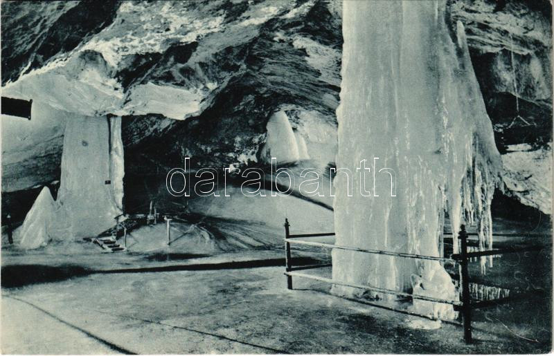 1914 Dobsina, Dobschau; Dobsinai jégbarlang, belső, Gótikus oltár és kút a nagyteremben. Fejér Endre kiadása / Dobschauer Eishöhle / Dobsinská ladová jaskyna / ice cave, interior<a href="https://www.darabanth.com/hu/gyorsarveres/440/kategoriak~Kepes