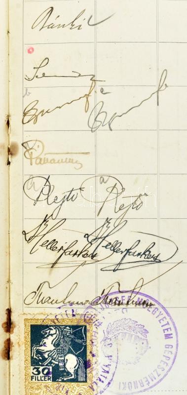 1914 Műegyetemi leckekönyv Bánki Donát, Zipernovszky, Rados stb. aláírásával