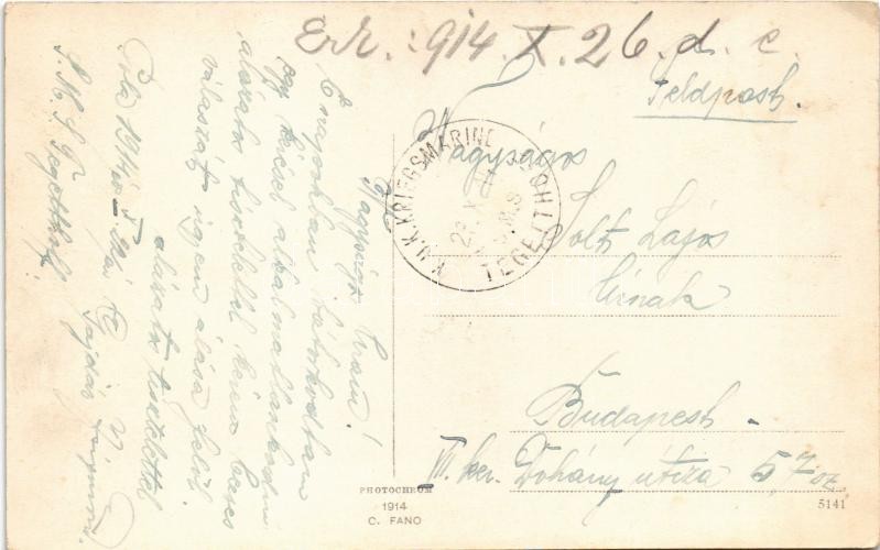 1914 SMS Streiter az Osztrák-Magyar Haditengerészet Huszár-osztályú rombolója / K.u.K. Kriegsmarine Torpedoboot Zerstörer / Austro-Hungarian Navy Huszár-class torpedo destroyer SMS Streiter. C. Fano, 1914. + ‘K.U.K. KRIEGSMARINE S.M.S. TEGETTHOFF’ (EK)<br