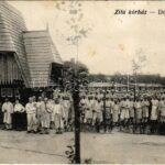 1915 Budapest IX. Zita kórház a Gyáli úton, Dohány tőzsde sérült katonákkal (EK)