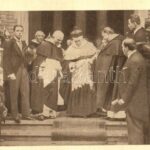 1915 Budapest XIV. A bíboros Hercegprímás, Dr. Csernoch János távozása a Rózsafüzér királynéja templom megáldása után október 3-án. Herbst műnyomása