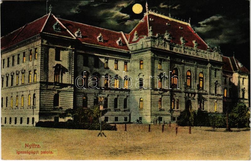 1915 Nyitra, Nitra; Igazságügyi palota este / palace of justice at night