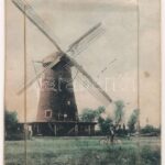 1915 Túrkeve, szélmalom. Leporellolap belül az Oroszlán vendéglő, Népkerti és sétakerti pavilonok. Daróczy Antal kiadása (kis szakadás / small tear)