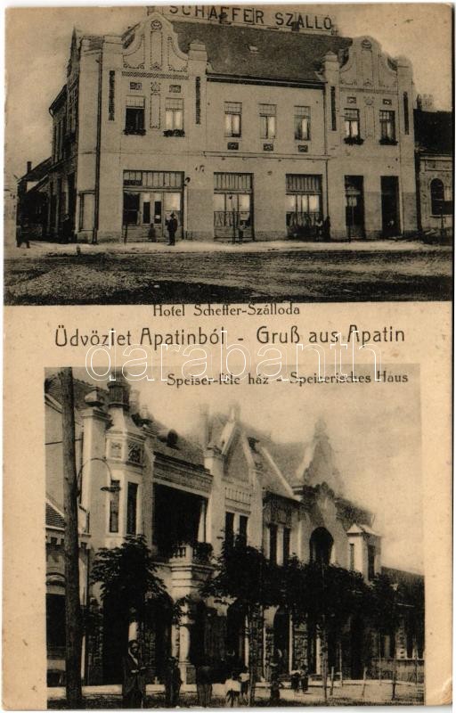 1916 Apatin, Schäffer szálloda, Speiser féle ház. Lotterer Antal kiadása / hotel, villa (EK)<a href="https://www.darabanth.com/hu/gyorsarveres/416/kategoriak~Kepeslapok/Vajdasag~2000007/1916-Apatin-Schaffer-szalloda-Speiser-fele-haz-Lotterer-Antal-k