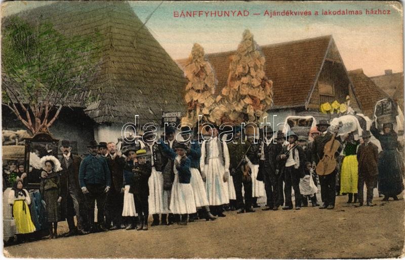 1916 Bánffyhunyad, Huedin; Ajándékvivés a lakodalmas házhoz, Jamberger férfi szabó üzlete / Transylvanian folklore, bringing gifts to the wedding, tailor’s shop (EB)<a href="https://www.darabanth.com/hu/gyorsarveres/415/kategoriak~Kepeslapok/Erdely~