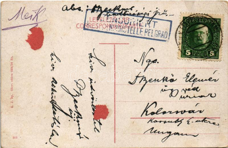 1916 Belgrád, Belgrade, Beograd; Herceg Mihály utca, bank / Fürst Michaelstraße / street view, bank (worn corners)<a href="https://www.darabanth.com/hu/nagyaukcio/39/kategoriak~Kepeslapok/Szerbia~16139/1916-Belgrad-Belgrade-Beograd-Herceg-Mihaly-utc