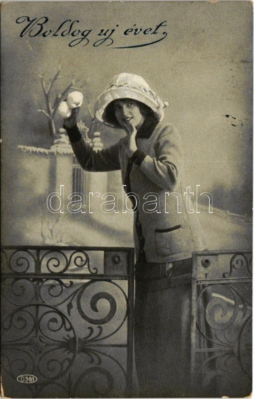 1916 Boldog Újévet! / New Year greeting art postcard with lady (EK)<a href="https://www.darabanth.com/hu/gyorsarveres/423/kategoriak~Kepeslapok/Udvozlolapok-Unnepek~1500093/1916-Boldog-Ujevet-New-Year-greeting-art-postcard-with-lady-EK~II2687182/?ut