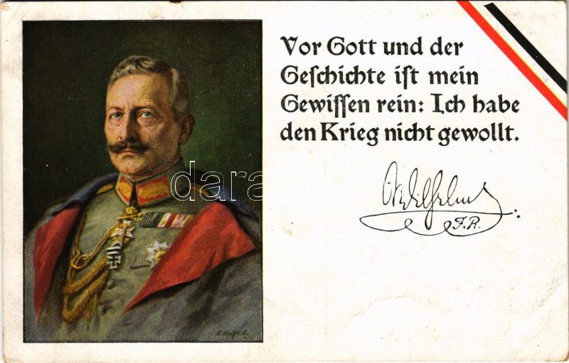 1916 II. Vilmos / Vor Gott und der Geschichte ist mein Gewissen rein: Ich habe den Krieg nicht gewollt. Wilhelm II. S.V.D. Nr. 1341.<a href="https://www.darabanth.com/hu/gyorsarveres/439/kategoriak~Kepeslapok/Uralkodo-Politikus~2000084/1916-II-Vilmo