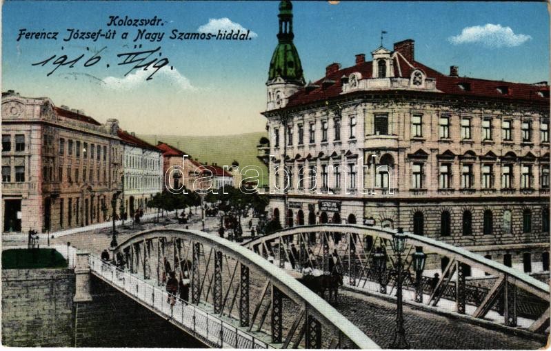 1916 Kolozsvár, Cluj; Ferenc József út, Nagy Szamos híd / street, Somes bridge<a href="https://www.darabanth.com/hu/gyorsarveres/422/kategoriak~Kepeslapok/Erdely~1500005/1916-Kolozsvar-Cluj-Ferenc-Jozsef-ut-Nagy-Szamos-hid-street-Somes-bridge~II2683