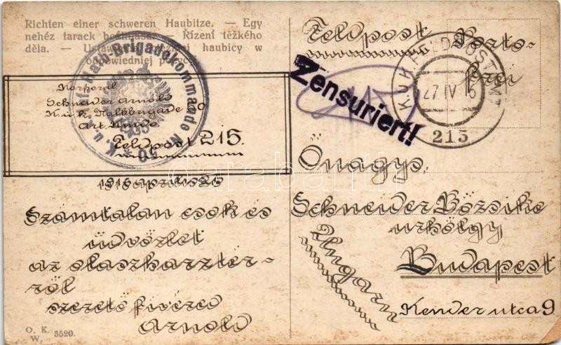 1916 Richten einer schweren Haubitze / Egy nehéz tarack beállítása / WWI Austro-Hungarian K.u.K. military, heavy artillery. O.K.W. 3520. + ‘K.u.K. Inf.-Halb-Brigadekommando No. 50.’ (kopott sarok / worn corner)