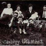 1917 Budapest II. Hűvösvölgy, kirándulók csoportja kutyával. photo