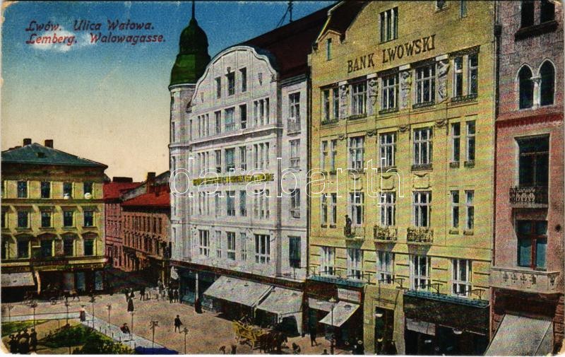 1917 Lviv, Lwów, Lemberg; Ulica Walowa, Bank Lwowski / street, shops (EK)