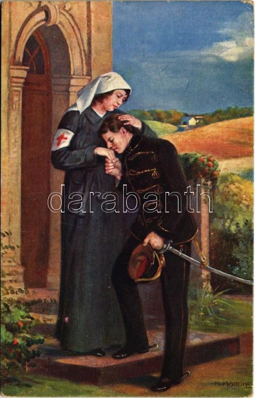 1917 Uzdraven? / WWI Austro-Hungarian K.u.K. military art postcard, Red Cross nurse with soldier. Salon J. Plichta Prague 1117. s: M. Martinková (EK)<a href="https://www.darabanth.com/hu/gyorsarveres/416/kategoriak~Kepeslapok/Katonai~2000061/1917-Uz