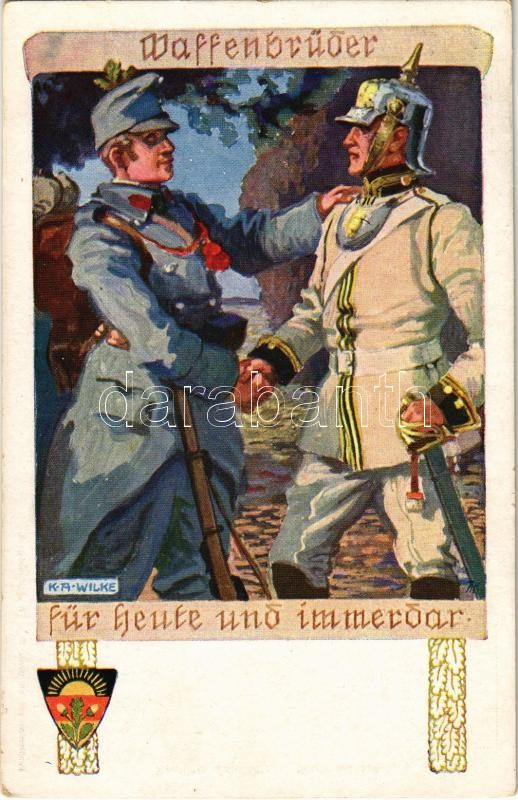 1917 Waffenbrüder für heute und immerbar / WWI German and Austro-Hungarian K.u.K. military art postcard, Viribus Unitis propaganda. Deutscher Schulverein Karte Nr. 475. s: K. A. Wilke (EK)<a href="https://www.darabanth.com/hu/gyorsarveres/412/katego