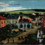 1918 Berezhany, Brzezany, Berezsani; Ryenk, Fryzyer / Ringplatz / square, hairdresser, monument (fa)