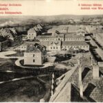 1918 Hajmáskér, Cs. és kir. tüzérségi lövőiskola, laktanya látképe a víztoronyból