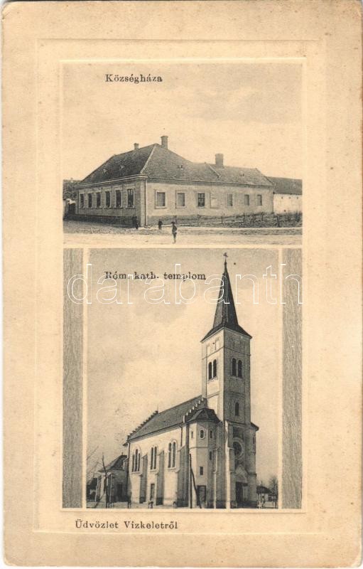 1918 Vízkelet, Cierny Brod; községháza, Római katolikus templom / town hall, church