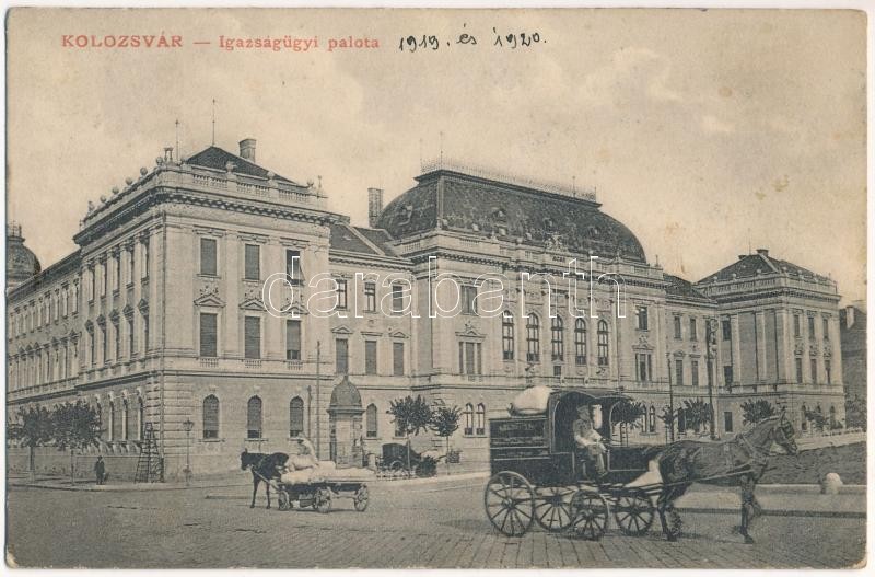 1919 Kolozsvár, Cluj; Igazságügyi palota, lovashintó / financial palace, horse chariot (Rb)