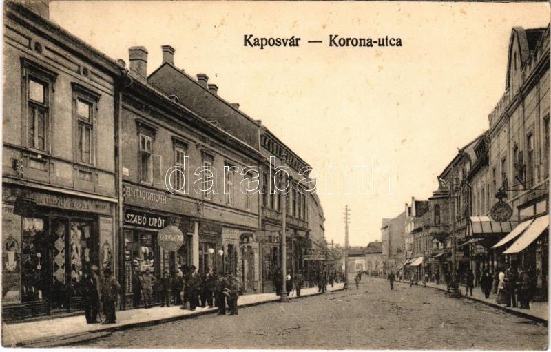 1920 Kaposvár, Korona utca, Antiquarium, Szabó Lipót üzlete. Vasúti levelezőlapárusítás 4898.<a href="https://www.darabanth.com/hu/gyorsarveres/411/kategoriak~Kepeslapok/Magyarorszag~1000005/1920-Kaposvar-Korona-utca-Antiquarium-Szabo-Lipot-uzlete-V