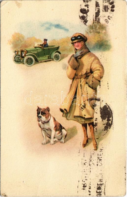 1922 Hölgy kutyával, autó / Lady with dog, automobile. Amag O.1. (EK)<a href="https://www.darabanth.com/hu/gyorsarveres/423/kategoriak~Kepeslapok/Muveszlapok~1500080/1922-Holgy-kutyaval-auto-Lady-with-dog-automobile-Amag-O1-EK~II2688055/?utm_source=