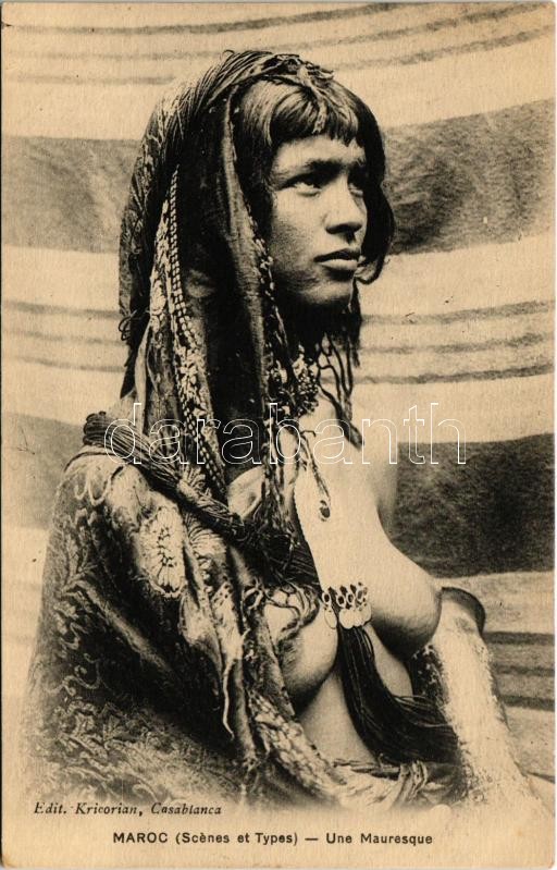 1923 Maroc (Scenes et Types) Une Mauresque / Morocco, half-naked Moor woman (EK)<a href="https://www.darabanth.com/hu/gyorsarveres/421/kategoriak~Kepeslapok/Folklor~1500022/1923-Maroc-Scenes-et-Types-Une-Mauresque-Morocco-half-naked-Moor-woman-EK~II