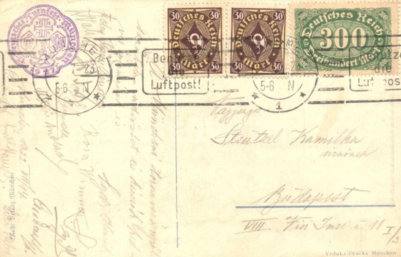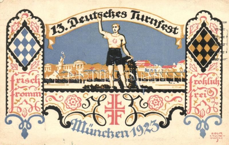 1923 München, 13. Deutsches Turnfest. Mahr-Verlag / German Gymnastics Festival art postcard. So. Stpl s: Siegmund von Suchodolski + Luftpost (EK)<a href="https://www.darabanth.com/hu/gyorsarveres/410/kategoriak~Kepeslapok/Sport~1500053/1923-Munchen-