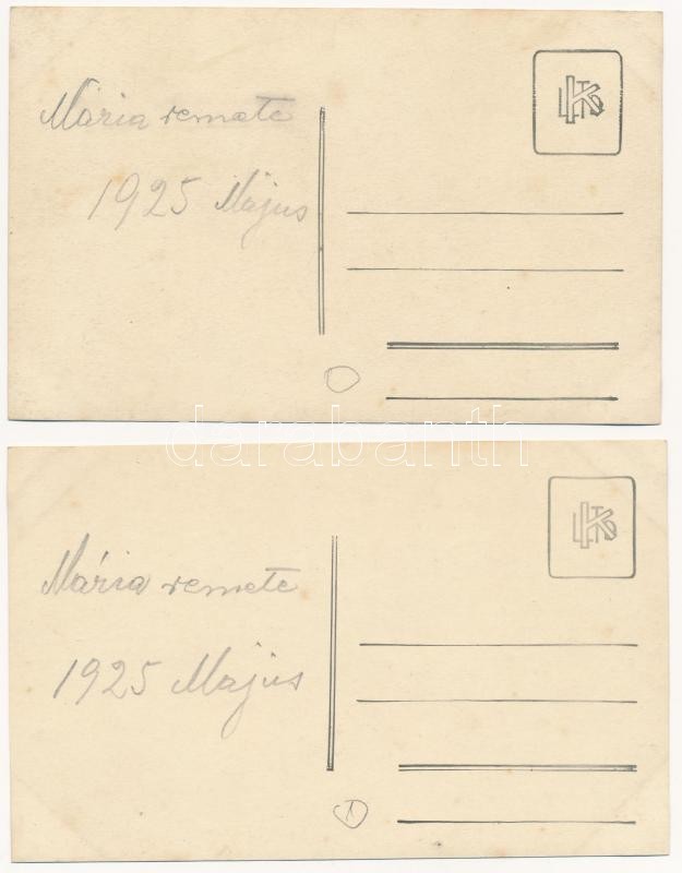 1925 Budapest II. Máriaremete – 2 db eredeti fotó felvétel, búcsújárás női és férfi résztvevői, csoportképek<a href="https://www.darabanth.com/hu/gyorsarveres/414/kategoriak~Kepeslapok/Magyarorszag~1500003/1925-Budapest-II-Mariaremete-2-db-eredeti-f