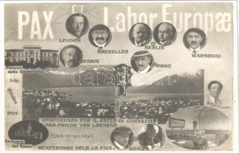 1925 Pax et Labor Europae, Conferenza per il Patto di Garanzia / Der Friede von Locarno / Locarno Treaties / Locarnói egyezmény: Mussolini, Benesch, Chamberlain<a href="https://www.darabanth.com/hu/gyorsarveres/412/kategoriak~Kepeslapok/Propaganda-p