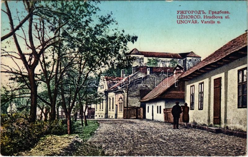 1925 Ungvár, Uzshorod, Uzhhorod, Uzhorod; Váralja utca, vár / Hradbova ul. / street view, castle (EK)<a href="https://www.darabanth.com/hu/gyorsarveres/412/kategoriak~Kepeslapok/Karpatalja~2000009/1925-Ungvar-Uzshorod-Uzhhorod-Uzhorod-Varalja-utca-v