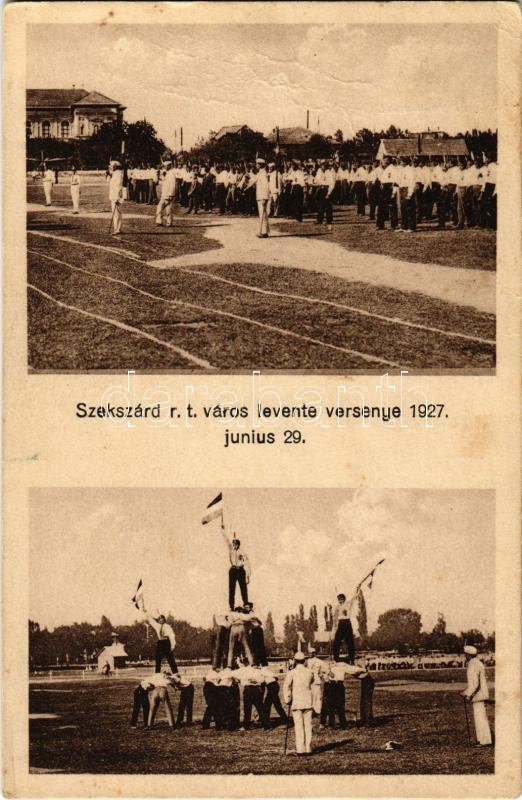 1927 Szekszárd, r.t. város levente versenye június 29-én. A Szekszárdi Levente Egyesület Újvárosi főcsoportjának kiadása, Borgula felvétele (fl)<a href="https://www.darabanth.com/hu/nagyaukcio/38/kategoriak~Kepeslapok/Magyarorszag~15644/1927-Szeksza