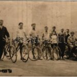 1928 Budapest, 100 km-es házi kerékpár verseny, biciklisták csoportképe, oldalkocsis motorkerékpár. photo (fl)<a href="https://www.darabanth.com/hu/nagyaukcio/38/kategoriak~Kepeslapok/Magyarorszag~15644/1928-Budapest-100-km-es-hazi-kerekpar-verseny-