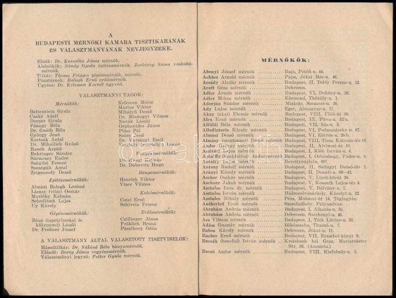 1929 A Budapesti Mérnöki Kamara tagjainak 1929. évi október hóban lezárt szak-, név- és címjegyzéke. Bp., 1929., Budapesti Mérnöki Kamara, 126+1 p. Papírkötés, sérült, hiányos borítóval, az utolsó lap szakadt, sérült.