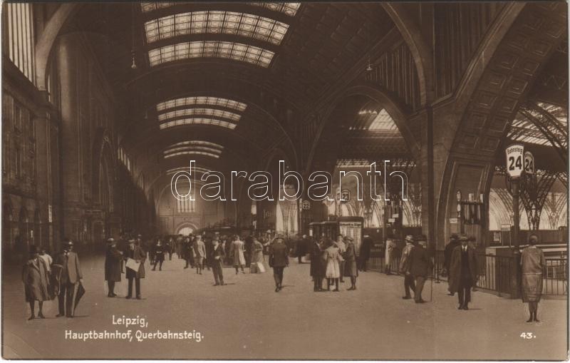 1929 Leipzig, Hauptbahnhof, Querbahnsteig / railway station interior, platforms<a href="https://www.darabanth.com/hu/gyorsarveres/412/kategoriak~Kepeslapok/Nemetorszag~2000057/1929-Leipzig-Hauptbahnhof-Querbahnsteig-railway-station-interior-platform