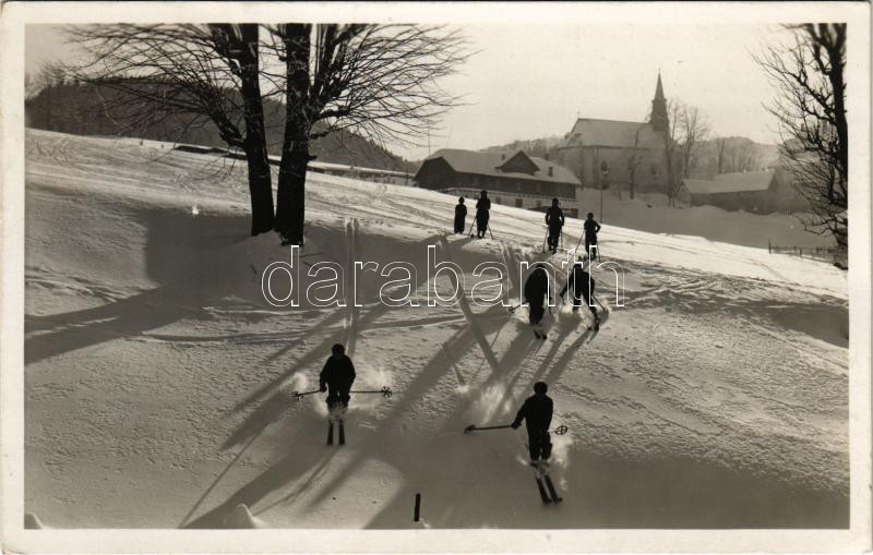 1933 Wintersportplatz Puchenstuben, Hotel Burger / skiers, skiing, winter sport<a href="https://www.darabanth.com/hu/gyorsarveres/439/kategoriak~Kepeslapok/Sport~2000073/1933-Wintersportplatz-Puchenstuben-Hotel-Burger-skiers-skiing-winter-sport~II28
