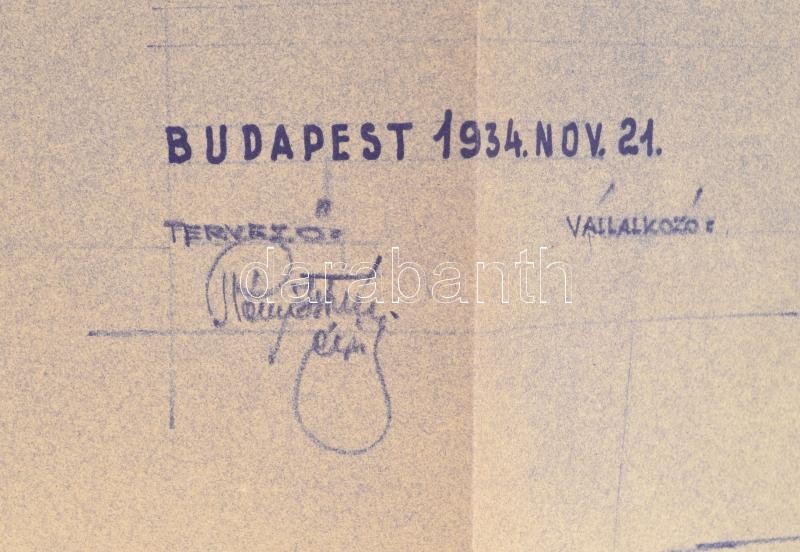 1934 Szirmai Emilné Bp. XI. ker. Diószegi út 43. sz. családi ház Rényi István építész általi terve, hajtva, 42×74 cm<a href="https://www.darabanth.com/hu/gyorsarveres/424/kategoriak~Mutargy-papirregiseg-egyeb/Tortenelmi-dokumentumok-keziratok-erdeke