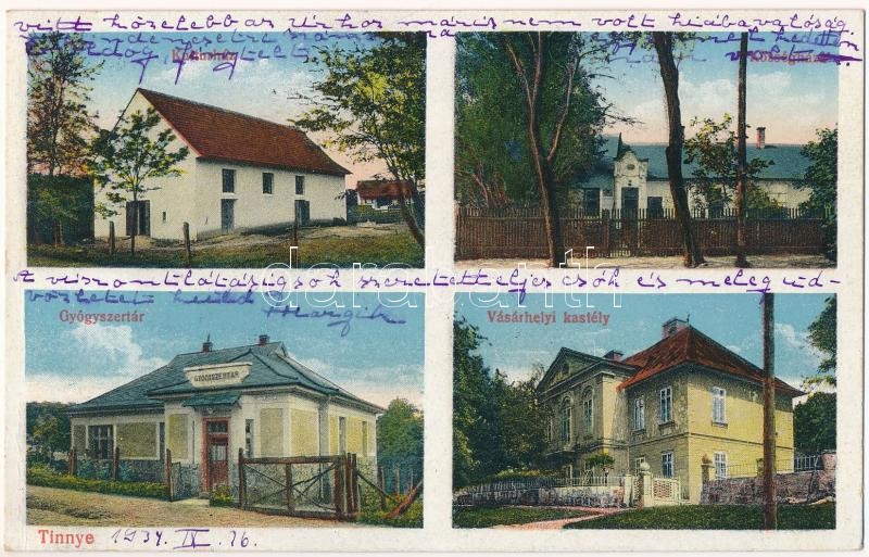 1934 Tinnye, kultúrház, Vásárhelyi kastély, gyógyszertár, községháza