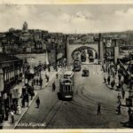 1935 Constantinople, Istanbul; Galata Köprüsü / street, bridge, trams
