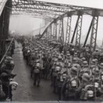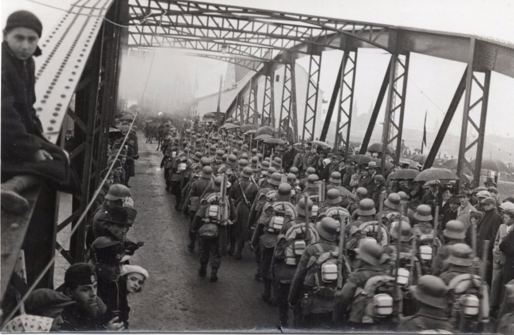 1938.11.06. A komáromi 6. gyalogdandár csapatai kelnek át az Erzsébet hídon. Eredeti fotó (Agfa Broriva) 11×17 cm