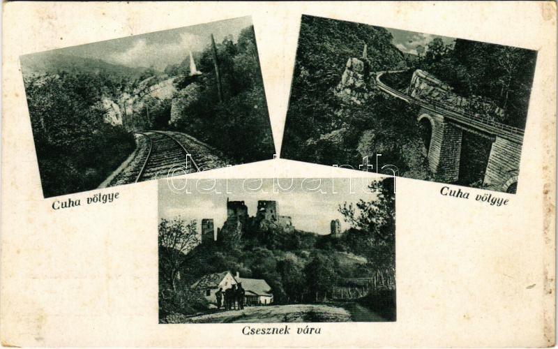 1938 Cuha-völgy, Czuha-völgy; vasútvonal a Bakonyban, Csesznek vára (fl)<a href="https://www.darabanth.com/hu/gyorsarveres/411/kategoriak~Kepeslapok/Magyarorszag~1000005/1938-Cuha-volgy-Czuha-volgy-vasutvonal-a-Bakonyban-Csesznek-vara-fl~II2557014/?