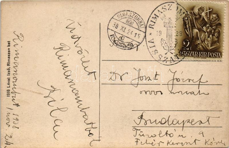 1938 Rimaszombat, Rimavska Sobota; Hungária szálloda és kávéház, Lévai Izsó üzlete és saját kiadása / hotel and cafe, shop + ‘1938 Rimaszombat visszatért’ So. Stpl (EK)<a href="https://www.darabanth.com/hu/nagyaukcio/38/kategoriak~Kepeslapok/Felvide