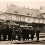 1938 Rimaszombat, Rimavska Sobota; vasútállomás a bevonulás után, ‘Mindent vissza!’ irredenta felirat, MÁV 376. sorozatú gőzmozdonya és vasutasok / railway station after the entry of the Hungarian troops, railwaymen and locomotive. Weizer photo<a hr