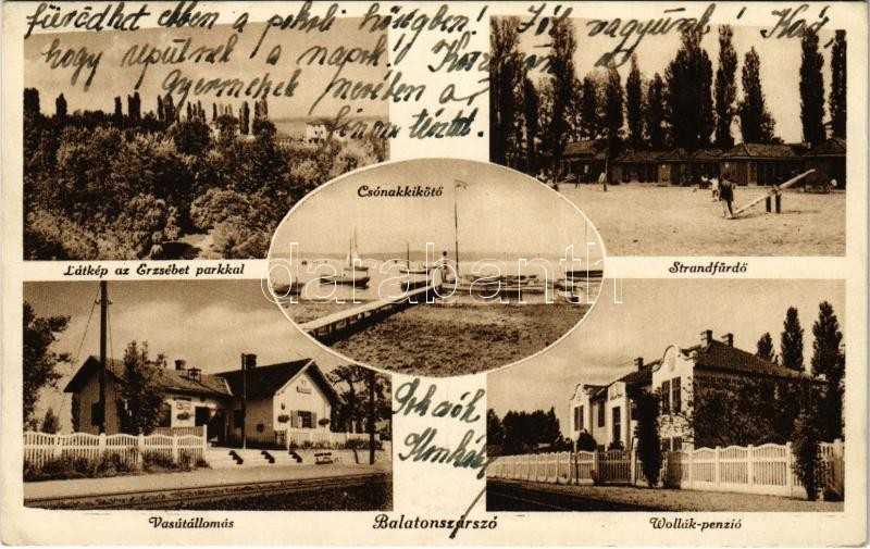 1939 Balatonszárszó, csónakkikötő, strandfürdő, vasútállomás, Erzsébet park, Wollák penzió