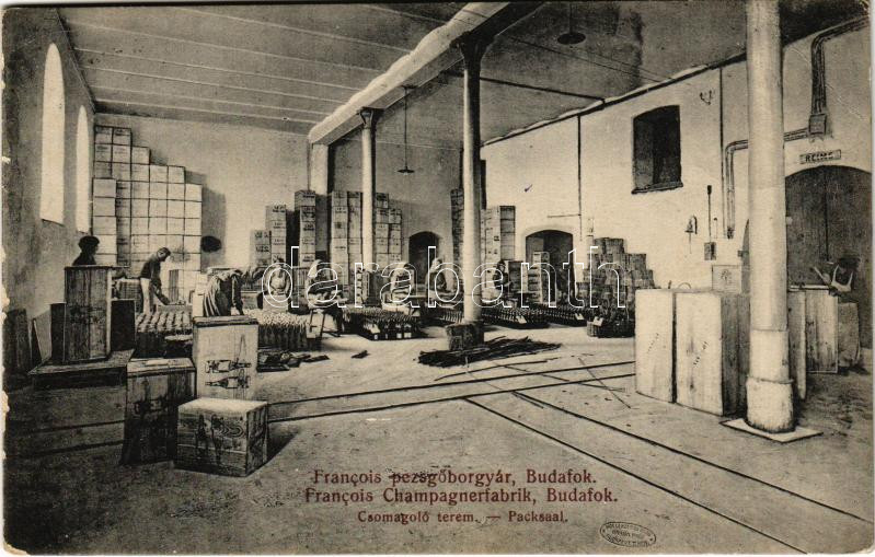 1939 Budapest XXII. Budafok. Francois pezsgőborgyár belső, csomagoló terem (EB)<a href="https://www.darabanth.com/hu/gyorsarveres/440/kategoriak~Kepeslapok/Magyarorszag~2000005/1939-Budapest-XXII-Budafok-Francois-pezsgoborgyar-belso-csomagolo-terem-