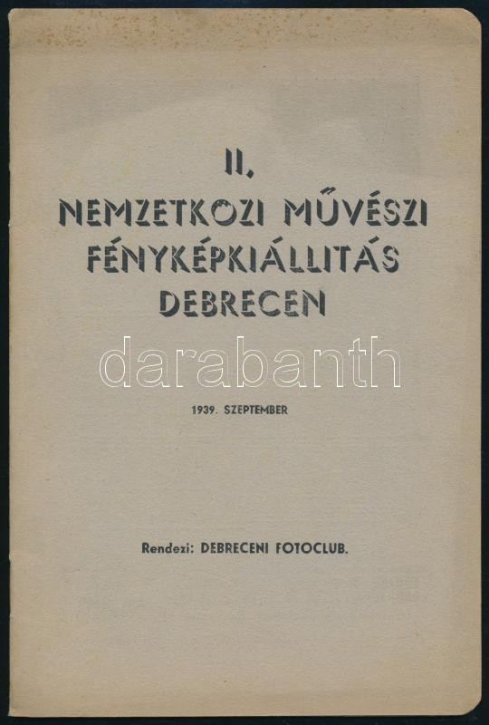 1939 II. Nemzetközi művészi fényképkiállítás Debrecen. 1939. szeptember. Debrecen, 1939, Debreceni Fotoclub, (Lehotai-ny.), 16 p. Benne fekete-fehér fotókkal, közte Angyalfi Andor, Vadas Ernő fotóival. Benne nemzetközi és magyar fotósok neveivel, közte An
