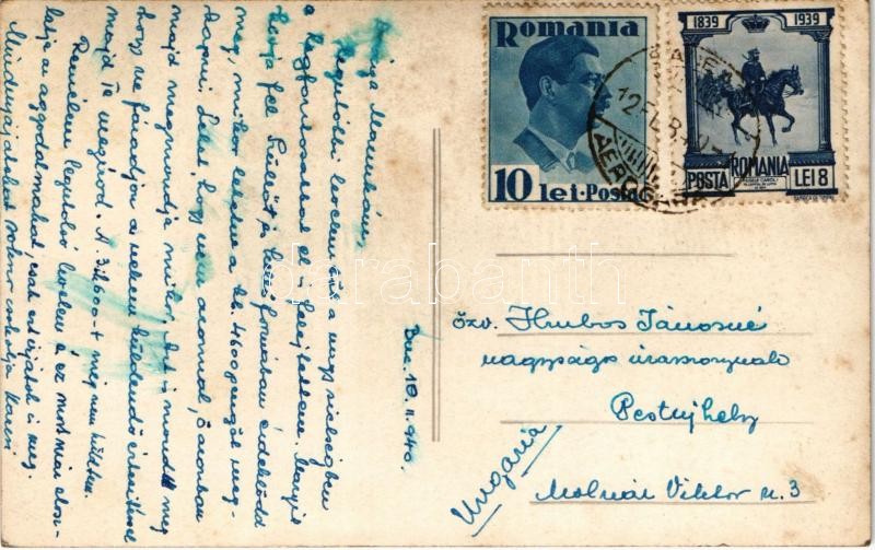1940 Bucharest, Bukarest, Bucuresti, Bucuresci; Bd. Bratianu, Creditul Minier, Mercedes-Benz, Foto Bucegi, Motociclete Biciclete / street view, tram, shops, automobiles. photo<a href="https://www.darabanth.com/hu/gyorsarveres/420/kategoriak~Kepeslap