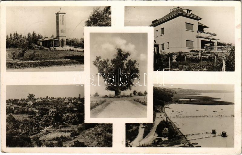 1942 Balatonakarattya, Bercsényi strandfürdő, Római katolikus templom, Rákóczi fa, varga nyaraló<a href="https://www.darabanth.com/hu/gyorsarveres/418/kategoriak~Kepeslapok/Magyarorszag~1500005/1942-Balatonakarattya-Bercsenyi-strandfurdo-Romai-katol